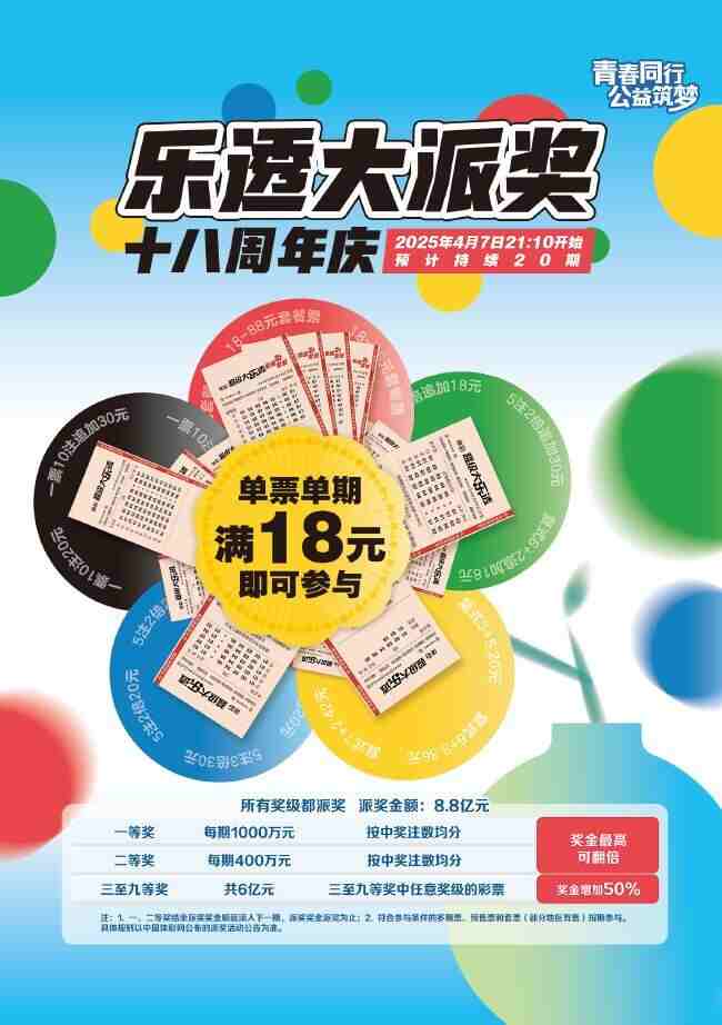 需要注意的是,派奖期间,单张单期投注金额18元及以上的超级大乐透彩票参与本次派奖活动,符合参与条件的多期票、套票、预售票按期参与。
