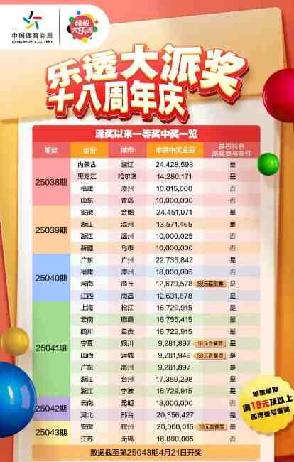 • 一图速览!大乐透8.8亿派奖季一等奖中奖汇总