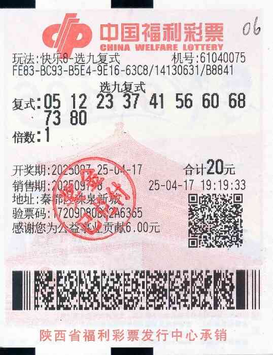 经系统查询,该注大奖彩票于当日19点19分在秦都区珠泉新城福彩61040075号投注站售出。中奖彩票为一张选九复式自选票,除中得1注“选九中九”外,还收获9注“选九中八”,总奖金高达31.8万元。