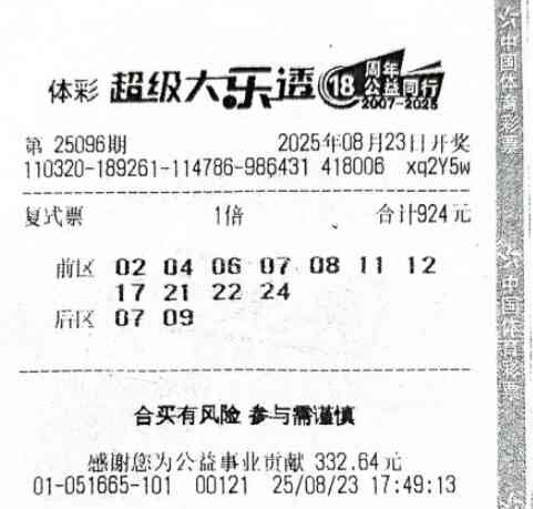•   8月23日,体彩大乐透第25096期如期开奖,本期共开出12注一等奖,每注奖金高达769万元。在这场幸运的盛宴中,南京3201051665网点的购彩者陈先生成为其中一位幸运儿,凭借“11+2”的复式投注方式,他不仅成功斩获1注一等奖,还额外收获了30注四等奖、150注六等奖、200注八等奖以及81注九等奖,总奖金累计达到781万元。
