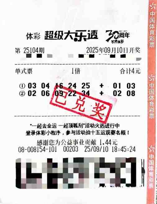 •   9月12日上午,甘肃省体育彩票管理中心迎来了一位幸运儿——来自白银的孙先生(化姓),他顺利办理了超级大乐透一等奖的兑奖手续。在9月10日开奖的体彩超级大乐透第25104期中,孙先生凭借一张仅花费4元的单式票,成功摘得一等奖,收获了高达1000万元的奖金!