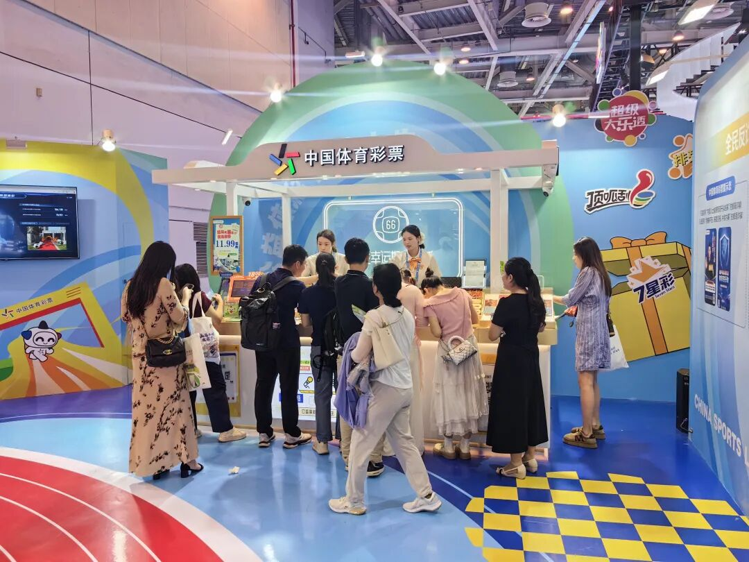 在本届博览会上,体彩展位格外醒目,门头采用彩虹门造型,整体蓝黄配色,吸引不少观众前来打卡。展位包括多个功能区:购彩者权益与理性购彩宣传区、全民反诈宣传区、游戏体验专区、刮票休息区、公益主题互动娱乐区、公信力展示区,场地中央是观众互动打卡区,大家纷纷在此拍照留影,希望为自己增添一份好运气。