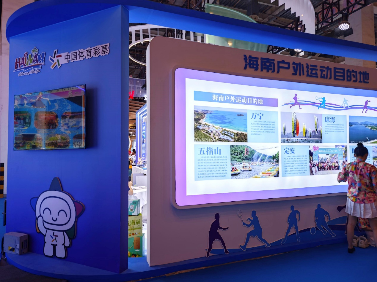 在本届博览会上,中国体育彩票以沉浸式、引共鸣、新体验的互动展区,并且在场馆内外布置了刀旗、喷绘展板等,向大众展示公益的力量与魅力,也为体育文化与旅游产业的融合发展注入了新的活力。