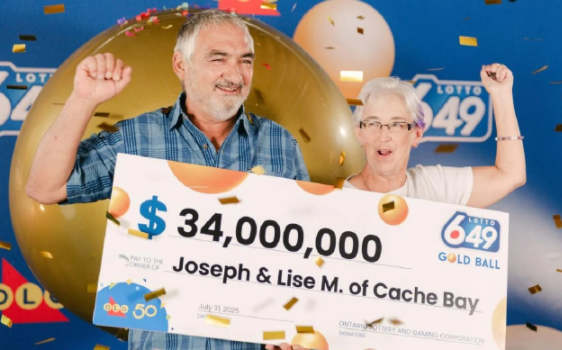 近日,加拿大安大略省卡什湾的一对老夫妻幸运斩获乐透6/49彩票大奖,奖金高达3400万加元(约合人民币1.8亿元)。在确认中奖的瞬间,老太太莉丝几乎因激动而心脏病发作。领奖现场,夫妻俩甜蜜互动,老先生乔笑称:“这次一定给她换一枚真正的大钻戒!”