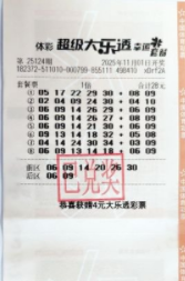 11月1日,超级大乐透第25124期的开奖揭晓,前区号码为06、09、14、26、27,后区号码为08、09。当期全国共开出18注一等奖,山东青岛中得其中1注,奖金为658万余元。