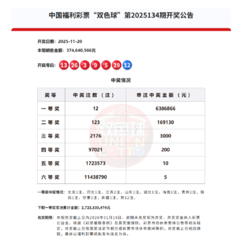 22:08 本期一等奖开出12注,单注奖金638万余元分落10地。其中江苏、贵州各中出2注,北京、河北、山东、湖北、海南、陕西、甘肃和新疆各1注。二等奖开出123注,单注奖金16.9万元。本期双色球全国销量为3.74亿余元,计奖结束后奖池余额为27.23亿余元。