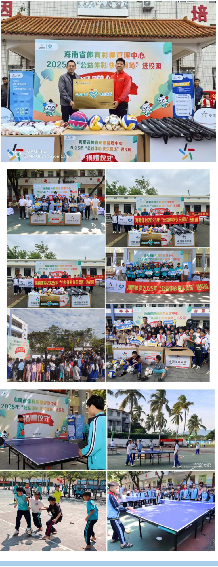 “公益体彩 快乐操场”活动是国家体育总局体育彩票管理中心于2012年发起的公益活动,为经济欠发达地区缺乏体育器材、教育资源的中小学校送去体育器材及课程。今年海南省体育彩票管理中心精心组织策划的“公益体彩 快乐操场”进校园活动,覆盖文昌、陵水、昌江、琼中、保亭等多个体育教育资源相对匮乏市县的中小学校,惠及近千名青少年,进一步彰显了中国体育彩票作为国家公益彩票的责任担当。