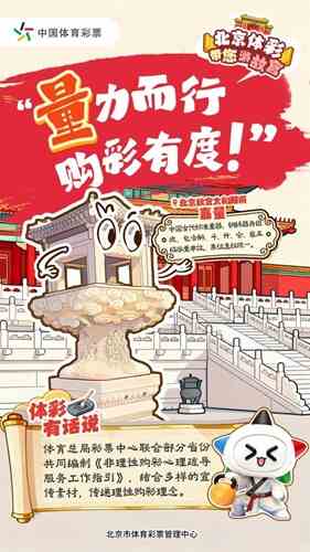 在实际工作中,北京体彩积极贯彻落实理性购彩理念,通过线下线上相结合的系统举措,扎实推进理性购彩与责任彩票建设。在线下实体渠道,店内张贴理性购彩标语,并对大额投注进行主动劝导,同时严格执行禁止未成年人购彩的制度管控。在宣传层面,累计推送主题内容约1400次,覆盖超百万人次,持续提升公众风险防范意识;精心打造“一张彩票的自白”系列图文与“购彩者权益保护小课堂”短视频栏目,其中《请看好咱们的“资金保险箱”》《警惕非法彩票》Rap等多部作品获国家体彩转载并入选省市协同优秀作品;创新设计系列主题海报,兼顾文化传播与知识普及。整体形成了制度规范、渠道覆盖、内容创新、传播有效的责任彩票宣传与教育体系,为引导理性购彩奠定了扎实基础。正如故宫太和殿前嘉量所象征的“度量有节”,北京体彩始终倡导理性购彩,引导公众以“有度”之心参与公益,让每一次购彩行为都成为健康生活的一部分,实现个人愉悦与社会公益的和谐统一。
