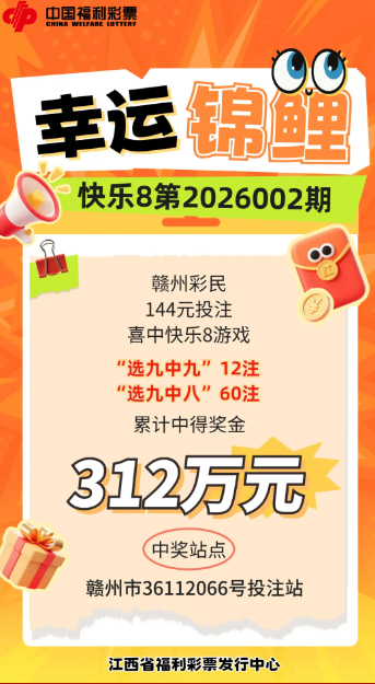 继1月1日南昌彩民凭借即开票中得80万元大奖的喜悦之后,昨晚赣州的彩民同样迎来了令人振奋的好消息。他们喜提“快乐8”大奖,奖金高达312万元!这样的好运不仅让中奖者感受到了新年的祝福,也为整个购彩社区带来了振奋与激励。