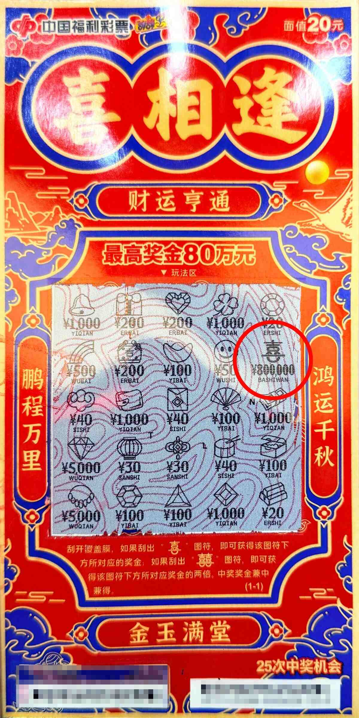 这份惊喜的降临颇具巧思。1 月 6 日下午,齐女士带着孩子在涪陵宝龙广场游玩,闲逛之余随手买了刮刮乐,没想到刮开涂层的瞬间,竟击中了 80 万元的大奖。