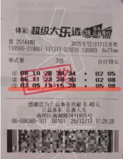正是这份源于公益的初心,塑造了他理性平和的购彩心态。“躺平随缘,中不中无所谓。”他坦言,自己从未在研究号码上花费精力,此次中奖的号码也是以机选为主,仅微调了后区号码。这种“随性守候”的态度,让大乐透为他生活增添乐趣的同时,也规避了非理性投注可能带来的负担。