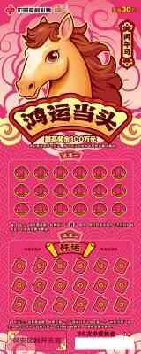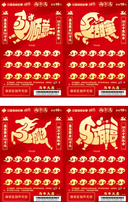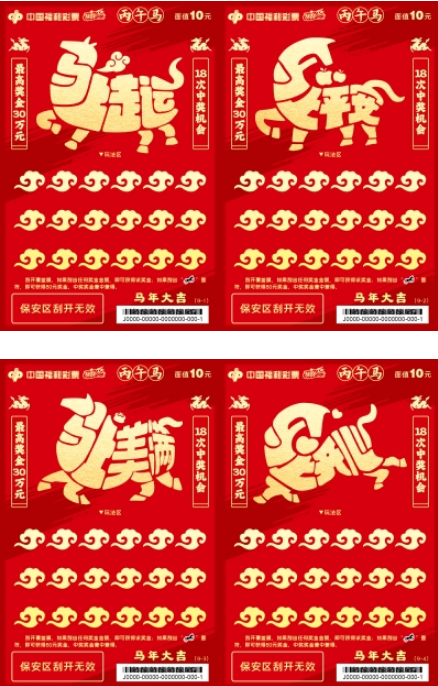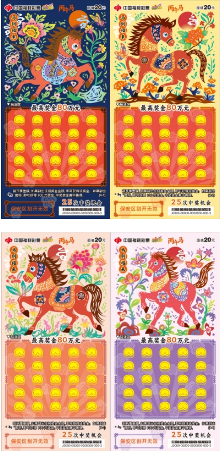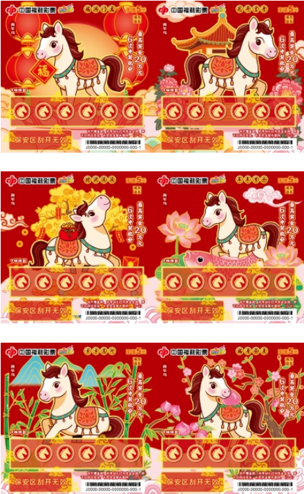 福彩“丙午马”生肖主题即开票包括五款游戏,“福马迎春”“马年大吉”“马到福来”“鸿运当头”“骏马迎春”,每一款都承载着美好寓意。马的昂扬神采与新春的吉祥祝福完美邂逅,勾勒出一幅幅喜气洋洋、瑞气盈门的节日画卷。