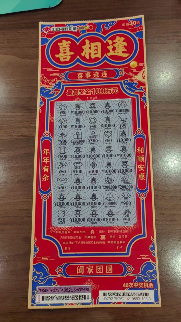 “我平时很少玩这个,一开始选了4张10元的,结果都没中。”符女士回忆道。随后她换了一张,幸运地中了30元小奖。此时朋友催促离开,店家也劝她见好就收,但她却坚持要再刮一张30元的“喜相逢”。