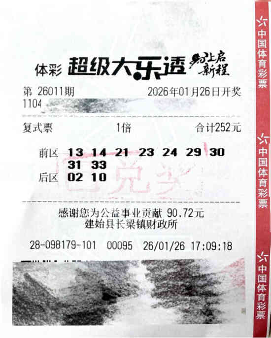 •   2026年1月26日,体育彩票大乐透第26011期进行了开奖。本期前区开出的号码为14、21、23、29、33,后区则开出了02、10。全国范围内共诞生了3注一等奖,每注奖金高达1000万元,分别被浙江、福建、湖北三地的幸运儿摘得。其中,湖北恩施的4228098179体彩销售点更是传出喜讯,一位购彩者中得1注一等奖,奖金总额达到了1007万元。