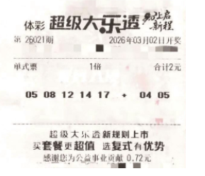 目前,超级大乐透新规则已经上市,广东体彩于3月5日起开展超级大乐透4000万元大赠票活动,购彩者购买超级大乐透一票10注彩票、指定复式投注或套餐票即可获得对应超级大乐透赠票奖励。