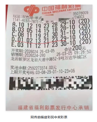 如果不是经常关注福彩开奖信息的网友很容易就会信以为真,在此也提醒大家一定要去福彩官网查询开奖公告,非官方晒出的大奖票看看就好,切勿盲目跟风投注以免承担不必要的风险。
