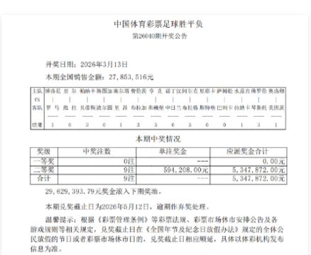 本期兑奖截止日为2026年5月12日,逾期作弃奖处理。