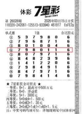 据悉,马先生已有十多年的购彩经历,他热衷于体彩的多种玩法,大乐透、7位数、7星彩都是他的“心头好”。多年来,他一直保持着规律且理性的购彩习惯,每期购彩金额稳定在20元左右,从不盲目增加投注,始终以平和的心态享受购彩带来的乐趣。与众多随性购彩的彩民不同,马先生有着坚定的守号习惯。此次中奖的号码,是他在初涉7星彩时,巧妙结合随机选号与自身生活经历精心挑选的“幸运号码”,自此便一直坚守,从未更改。值得一提的是,马先生选号独具匠心,票面前六位数字均选用不同数字组合,而最后一位则固定为“6”。此次中奖的彩票上,第四注号码“7、9、8、0、1、1+6”与当期开奖号码完全吻合,一举夺得1注一等奖及2注四等奖、1注五等奖、6注六等奖,奖金累计高达5001060元。