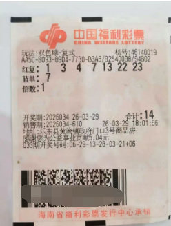 3月29日晚,中国福利彩票双色球第2026034期的开奖结果为:红色球号码01、03、07、13、22、23,蓝色球号码07。当期全国共开出13注一等奖,每注奖金为5,653,247元,其中1注花落海南。