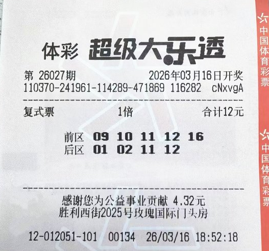 •   春意盎然,幸运降临。3月16日晚,体彩超级大乐透第26027期开奖结果揭晓,前区号码为“09、10、11、12、16”,后区号码为“01、11”。本期全国共开出7注一等奖,其中1注基本投注一等奖花落潍坊市潍城区,单注奖金高达698万元。次日,大奖得主便迅速现身山东省体彩中心,领取了这份春日里的幸运大奖。