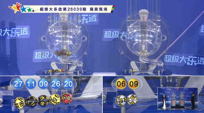 •   4月13日,超级大乐透第26039期开奖。前区开出号码09、11、20、26、27 ;后区开出号码06、09。本期全国销售3.21亿元,为国家筹集彩票公益金1.15亿元。