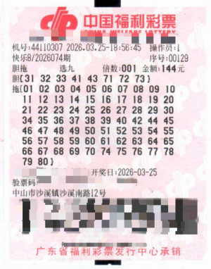 次日,即3月26日上午,幸运大奖得主周先生(化名)现身中山市福利彩票发行中心,顺利办理了兑奖手续。周先生此次中奖的彩票是一张面额为144元的选九“八胆全拖”票,凭借这张彩票,他一举斩获“选九中九”12注以及“选九中八”60注,总奖金高达312万元。