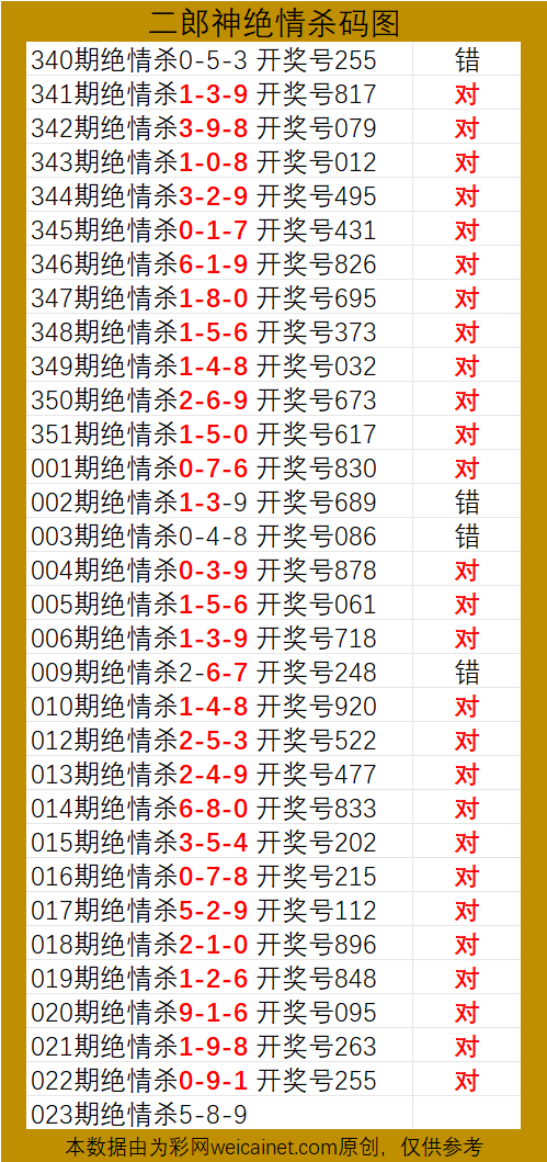 • 排列三26023期二郎神杀号 绝情杀三码