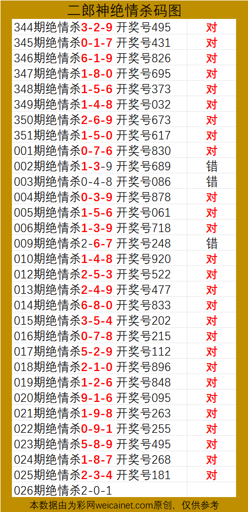 • 排列三26027期二郎神杀号 绝情杀三码