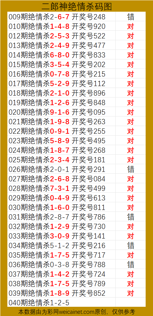 • 排列三26040期二郎神杀号 绝情杀三码