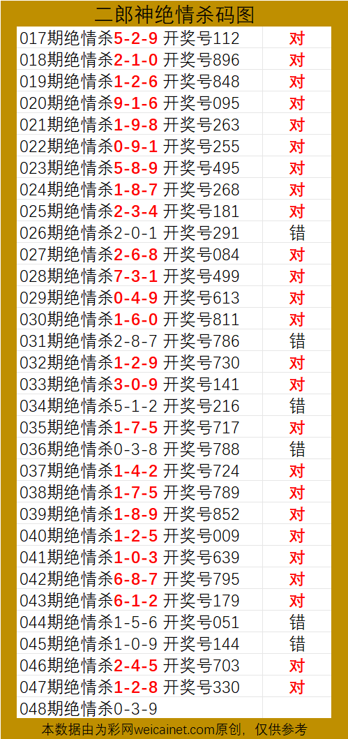 • 排列三26048期二郎神杀号 绝情杀三码
