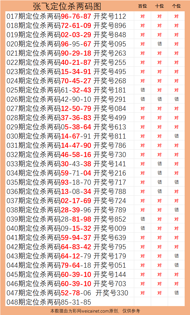 • 排列三26070期 张飞定位杀两码
