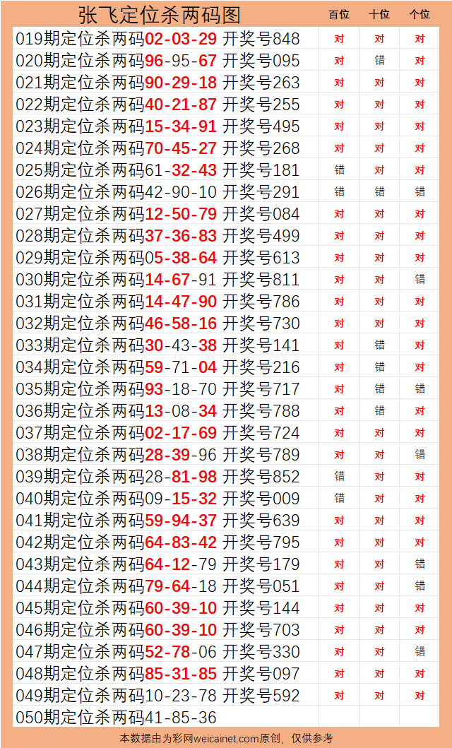 • 排列三26050期 张飞定位杀两码