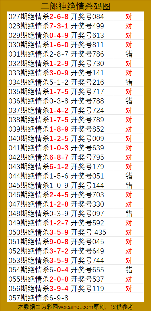 • 排列三26057期二郎神杀号 绝情杀三码