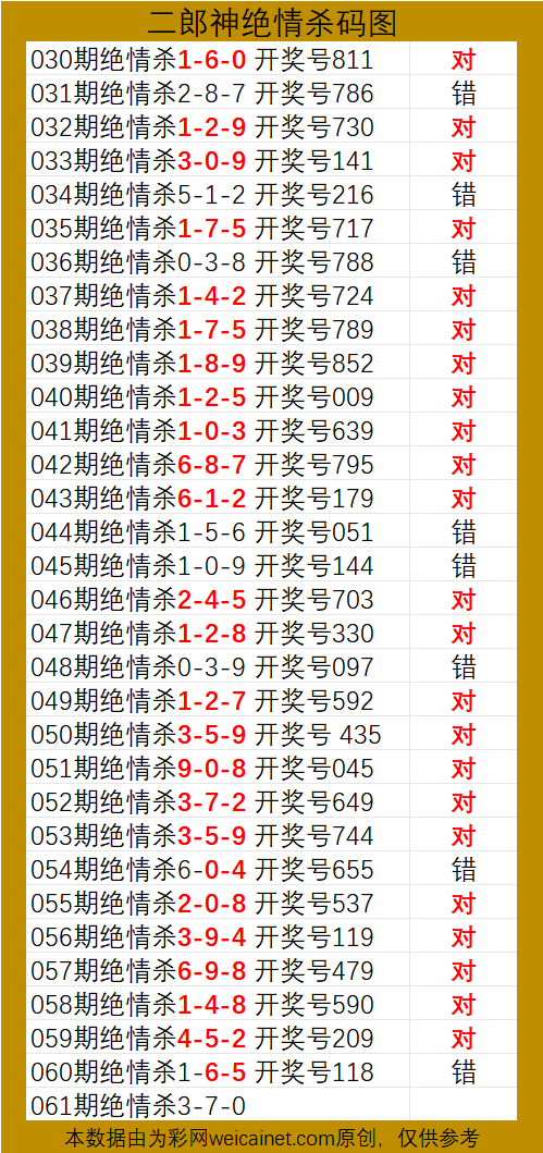• 排列三26061期二郎神杀号 绝情杀三码