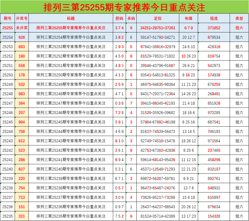 • 排列三25255期胆码预测分析 专家推荐374