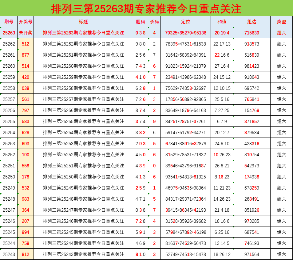 • 排列三25263期胆码预测分析 专家推荐938