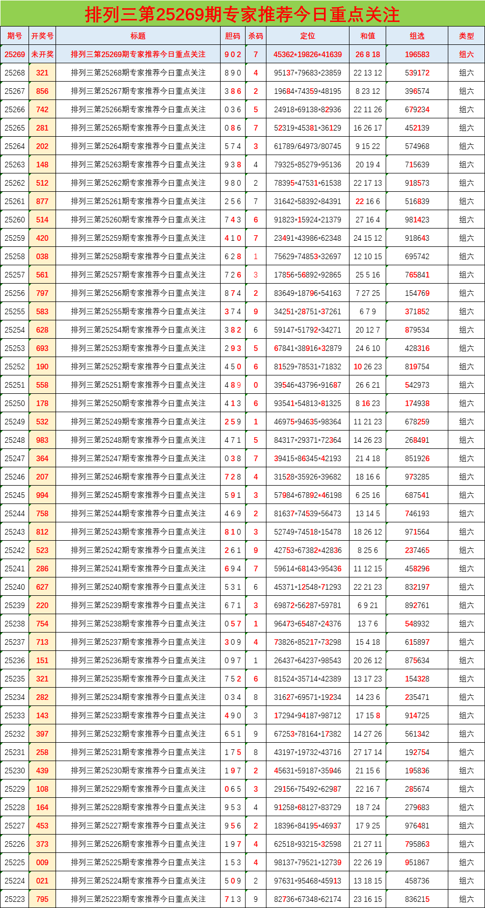 • 排列三25269期胆码预测分析 专家推荐902