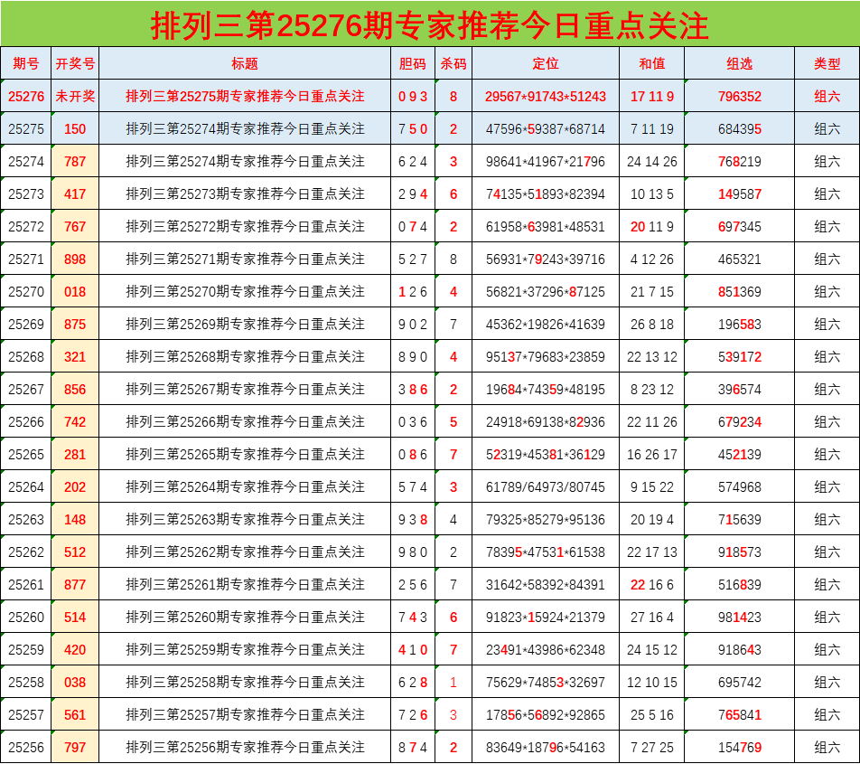 • 排列三25276期胆码预测分析 专家推荐093