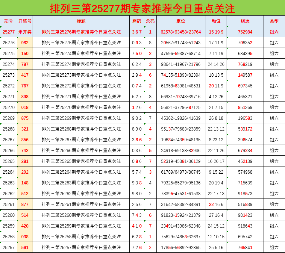 • 排列三25277期胆码预测分析 专家推荐367