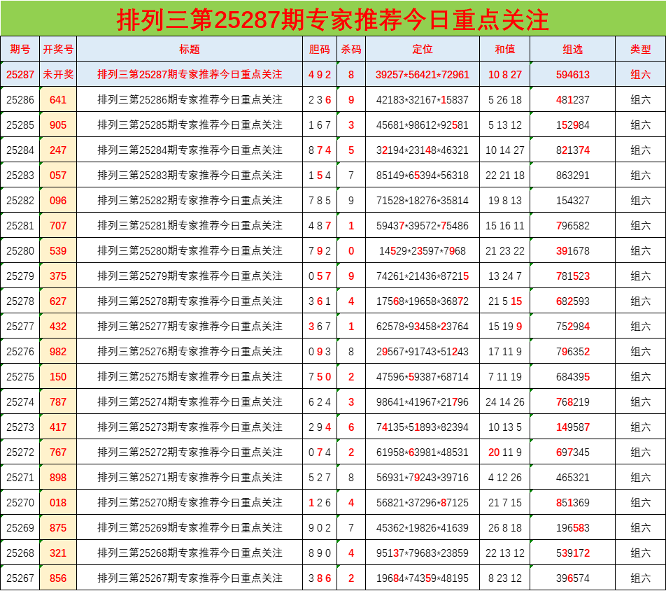• 排列三25287期胆码预测分析 专家推荐492