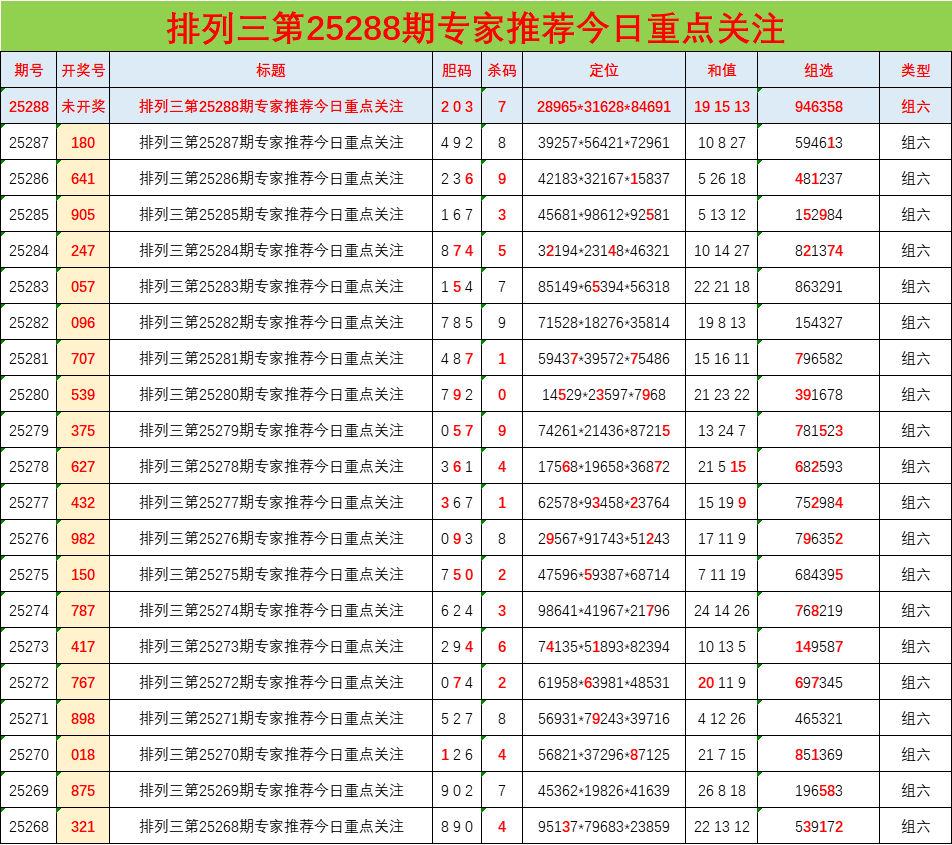 • 排列三25288期胆码预测分析 专家推荐203
