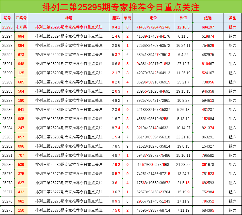 • 排列三25295期胆码预测分析 专家推荐941