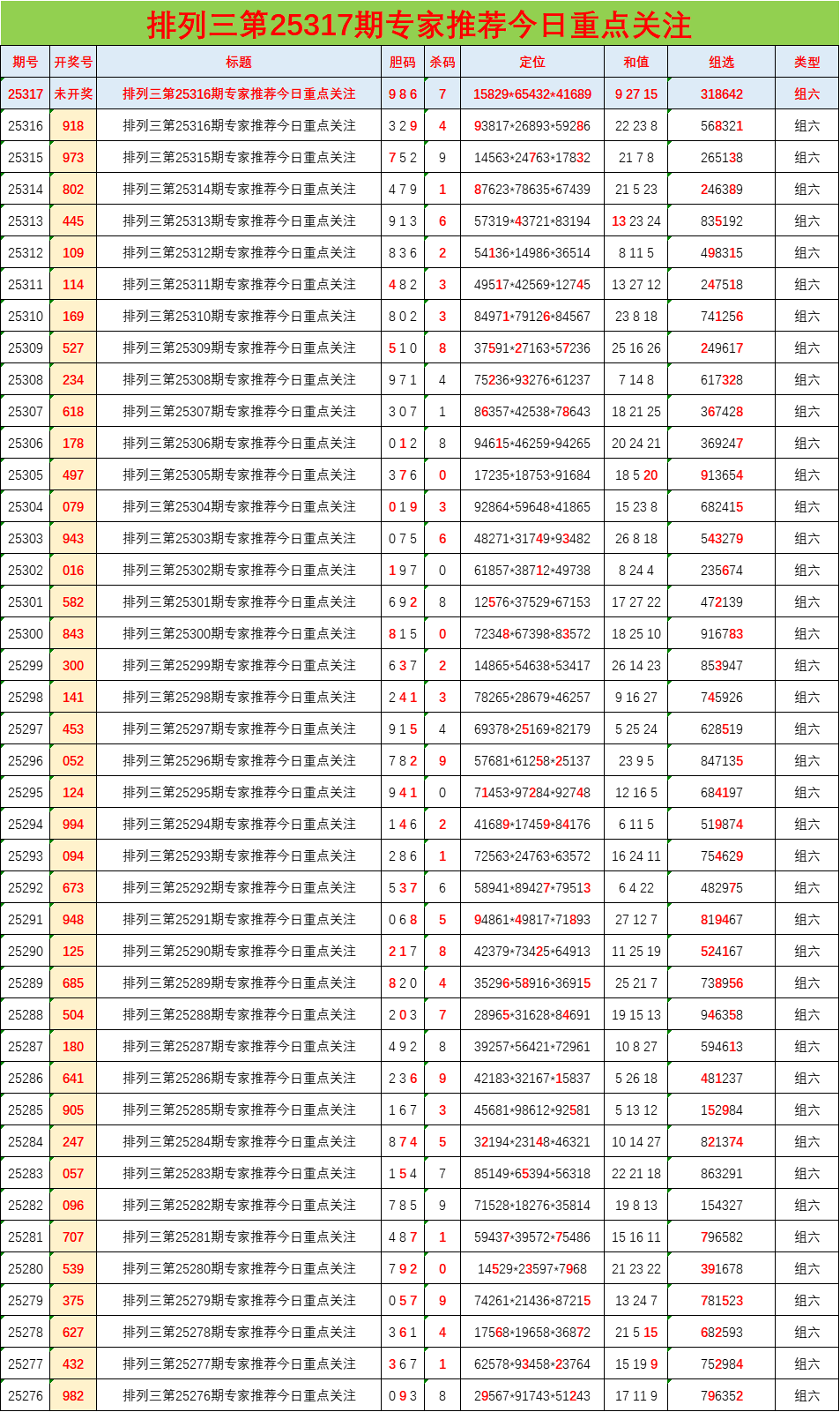 • 排列三25317期胆码预测分析 专家推荐986