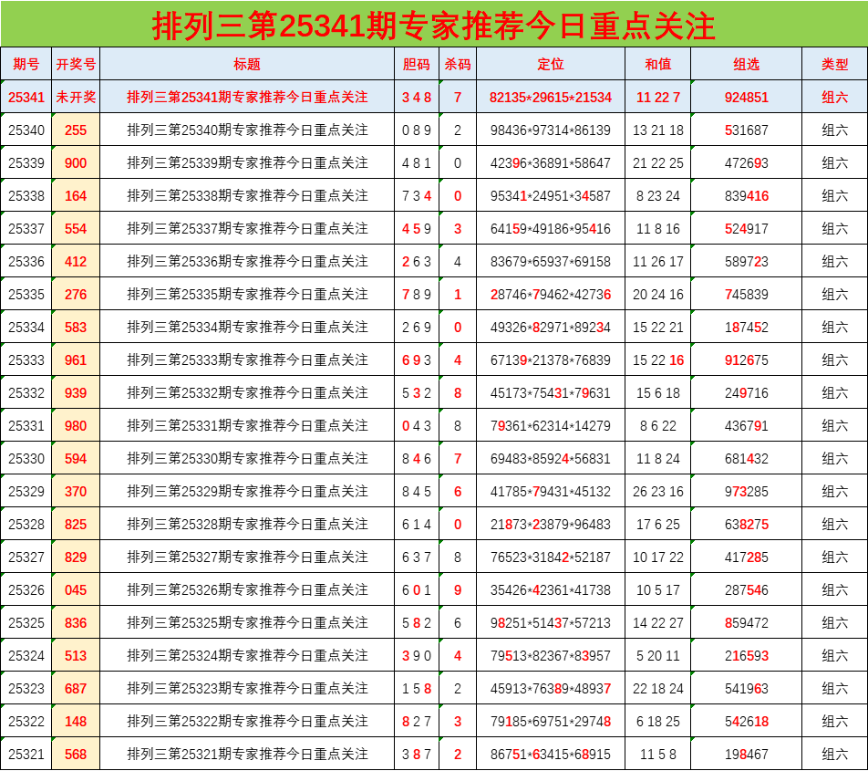 • 排列三25341期胆码预测分析 专家推荐348