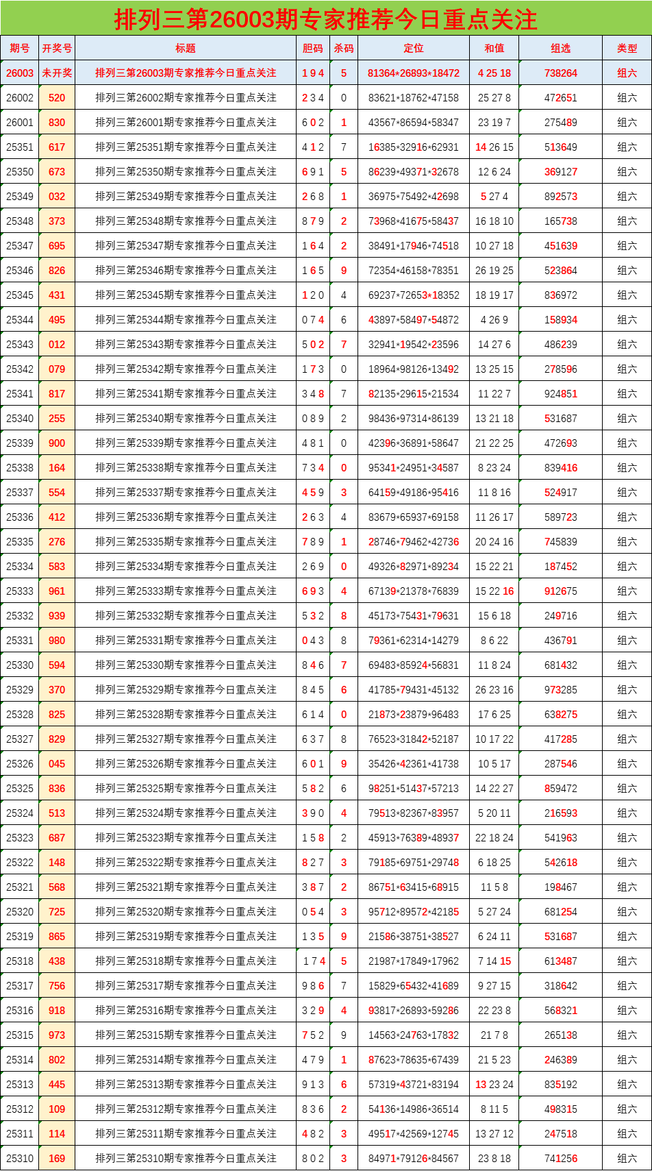 • 排列三26003期胆码预测分析 专家推荐194