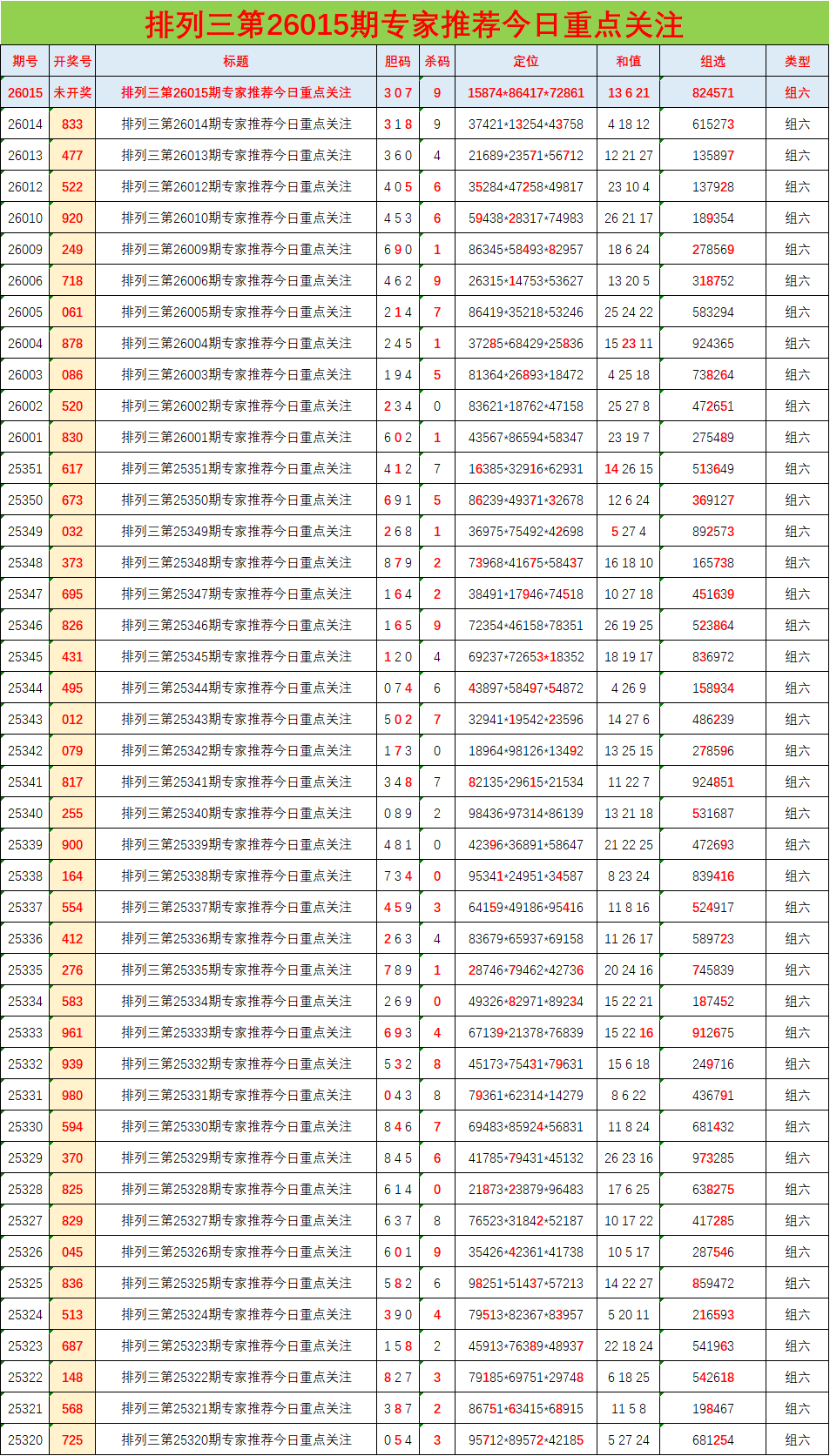 • 排列三26015期胆码预测分析 专家推荐307
