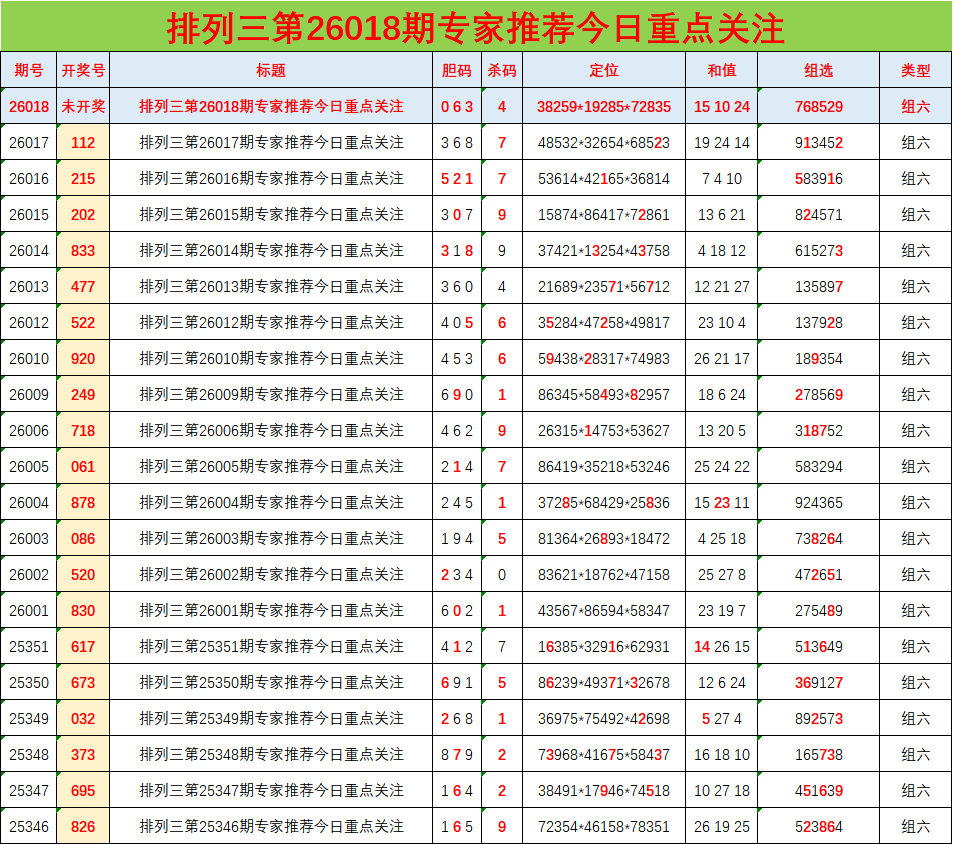 • 排列三26018期胆码预测分析 专家推荐063