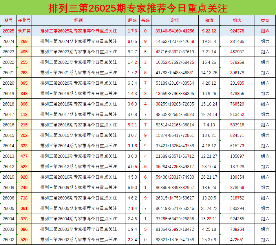 • 排列三26025期胆码预测分析 专家推荐176