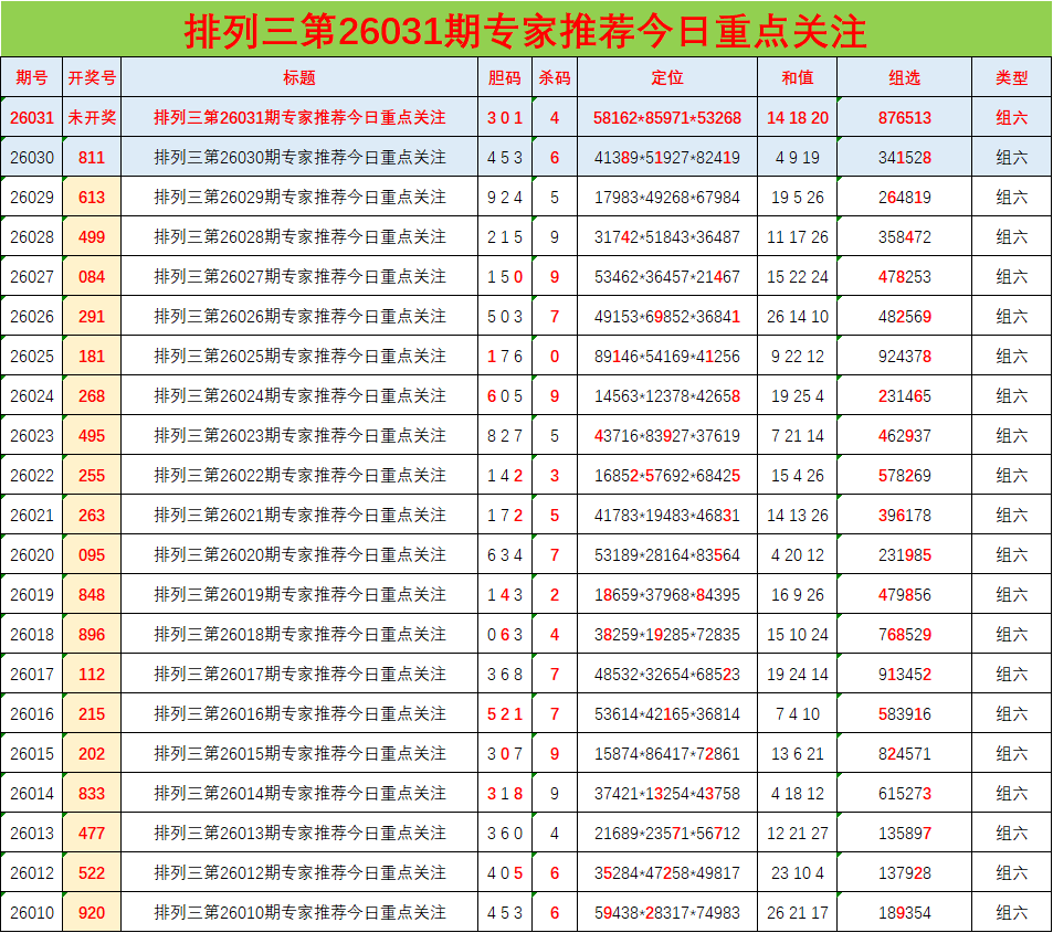 • 排列三26031期胆码预测分析 专家推荐301