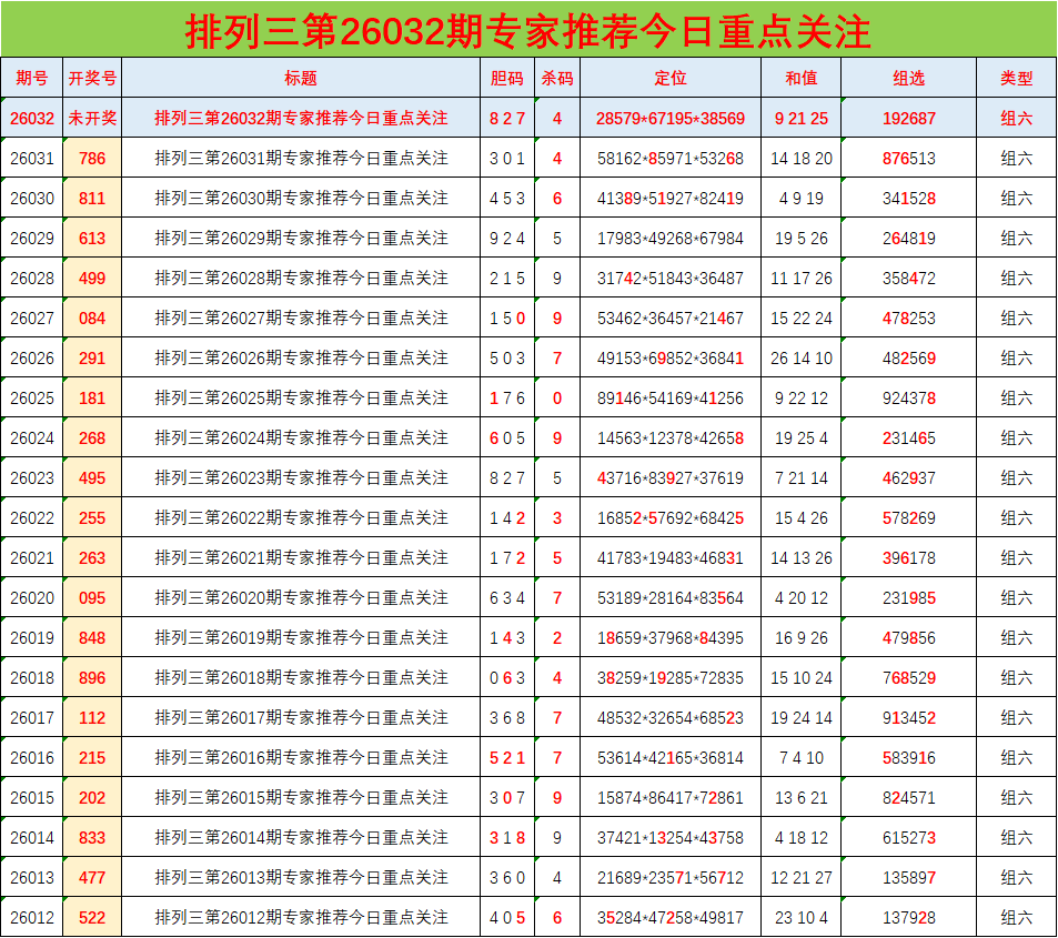 • 排列三26032期胆码预测分析 专家推荐827